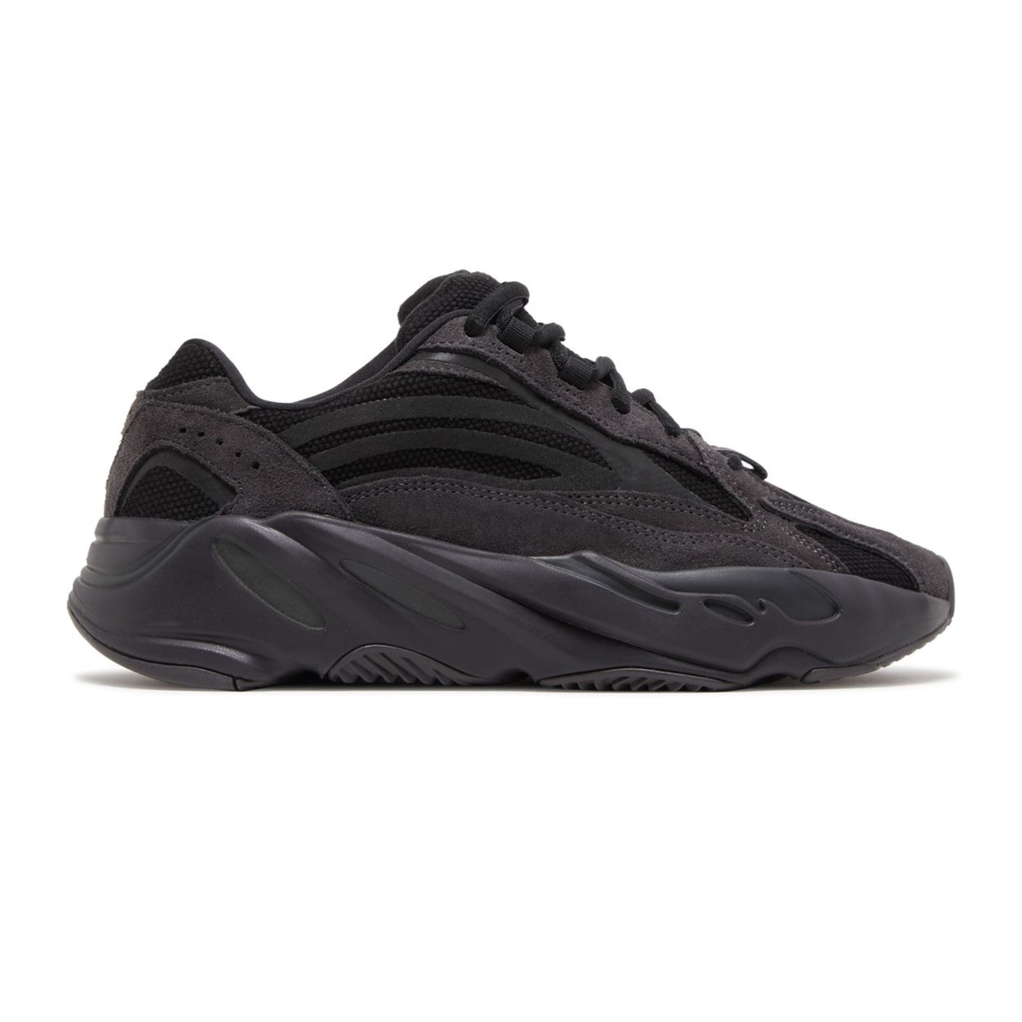 The Yeezy Boost 700 V2 'Vanta' emerges with a blacked-out look with this June 2019 release. The shoe's upper is built with multilayer mesh, overlaid by suede, all finished tonally. The sleek upper is supported underfoot by a bulky midsole that houses a full-length Boost unit for cushioning, giving way to a rubber outsole that provides traction.