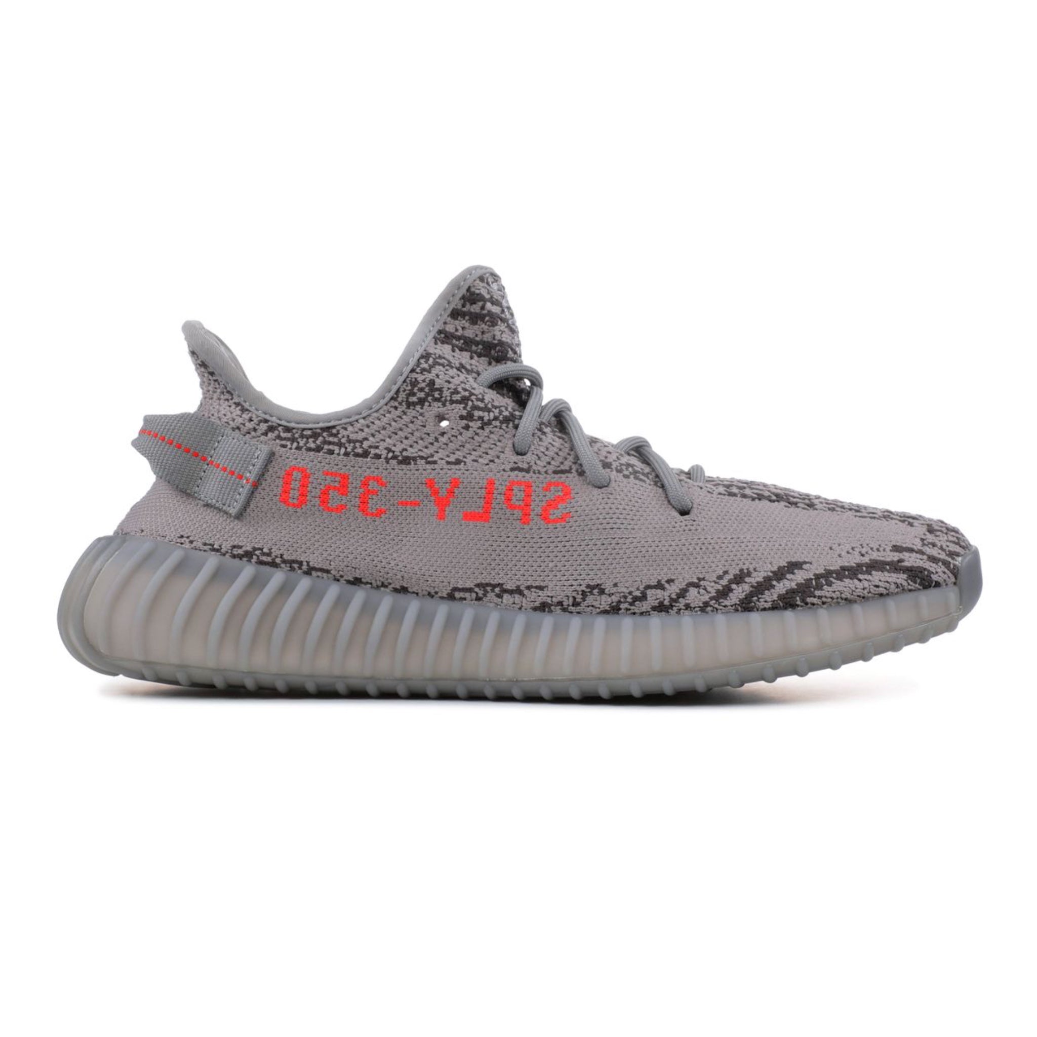 Unveiled at Madison Square Garden's Yeezy Season 3 presentation, the 350 V2 ' Beluga ' Yeezy Boost dropped on September 24, 2016. The evolved Yeezy Boost 350 V2 silhouette features a two-tone gray Primeknit and a laterally branded solar red stripe with SPLY-350. The midfoot suede panel was removed on the medial side and the pull tab was replaced by a new elastic fit.
