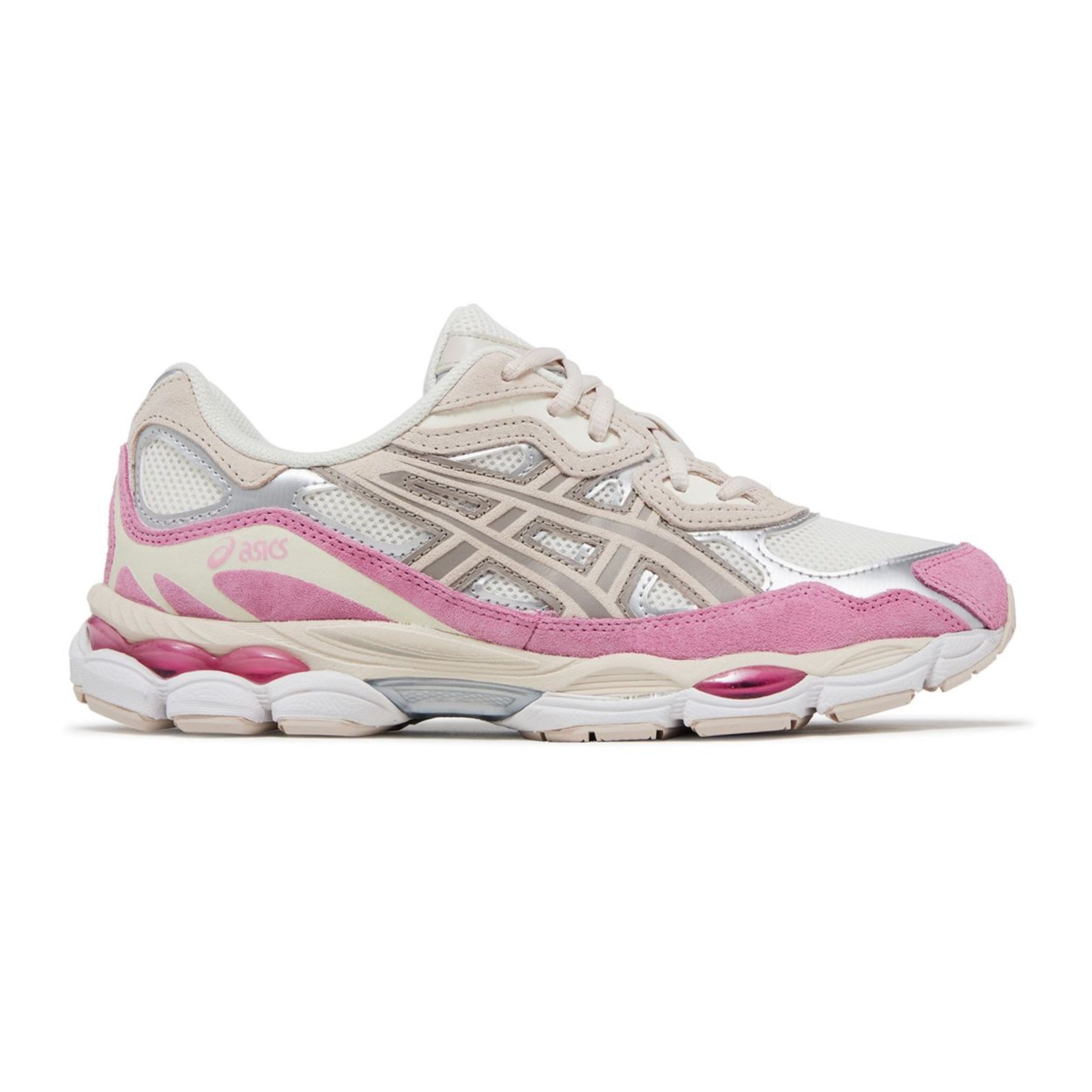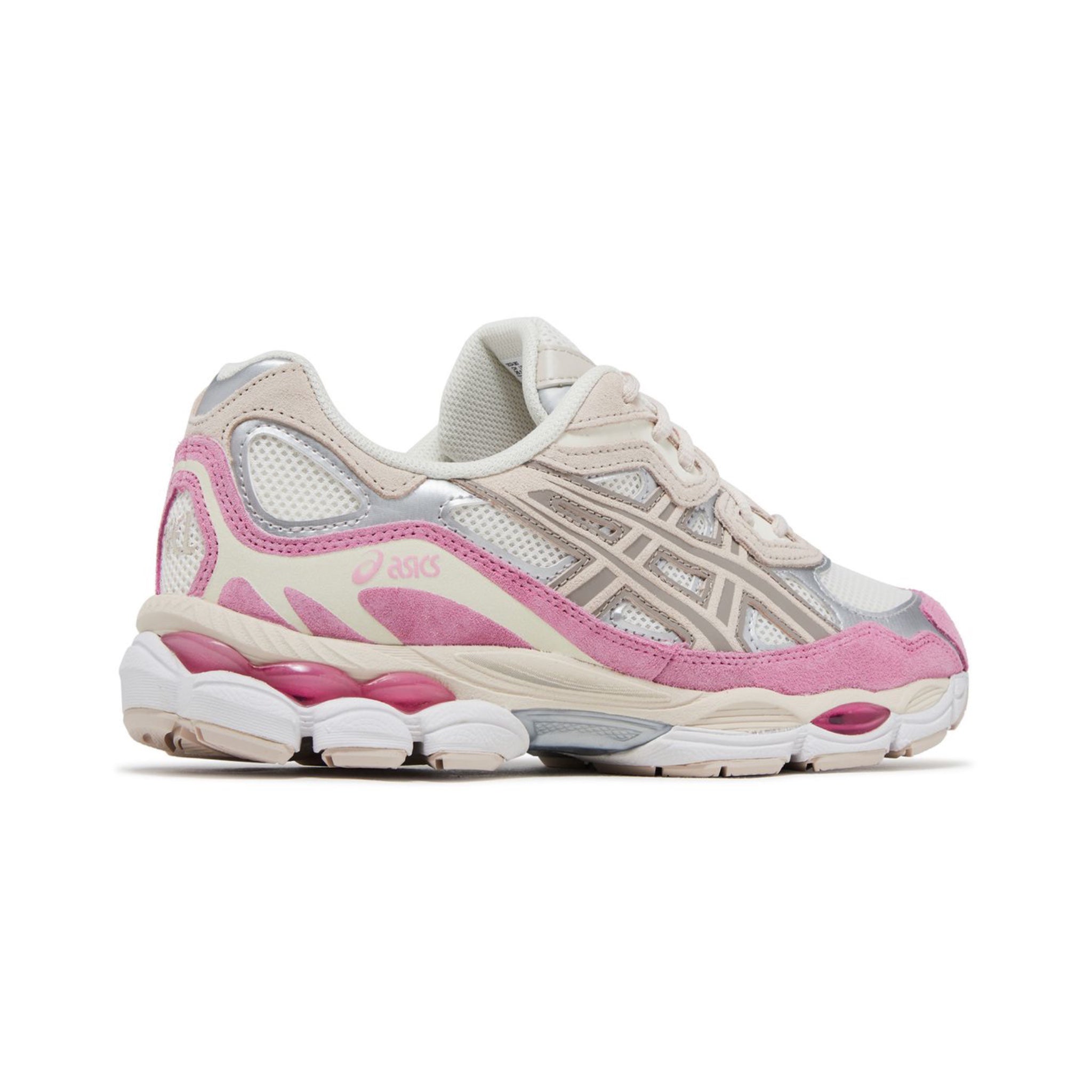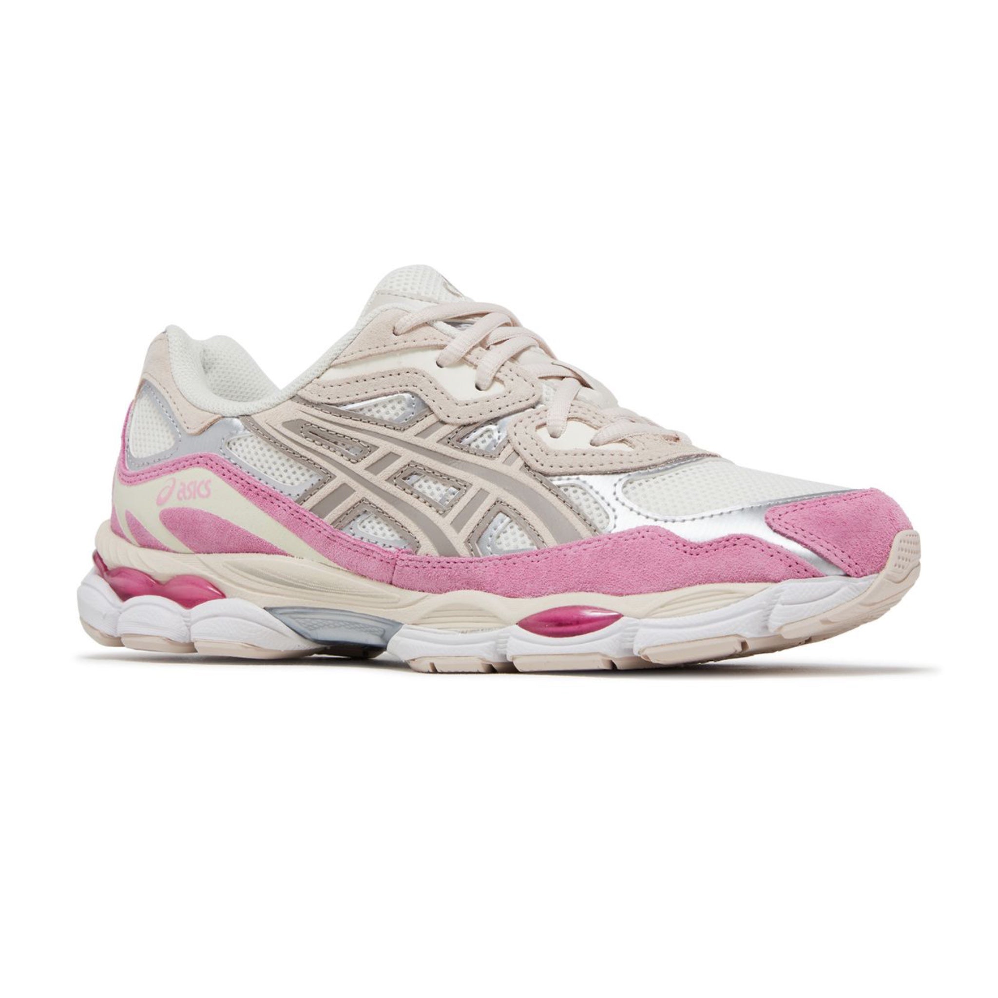 The ASICS Gel NYC 'Cream Pink' rolls out a mesh upper with pink synthetic suede overlays. Silver side stripes outlined in a light pink hue meet the ASICS' spiral logo embroidered on the tongue. The foam midsole splits two colors, tooled with GEL inserts in the forefoot and heel for a lightweight feel.