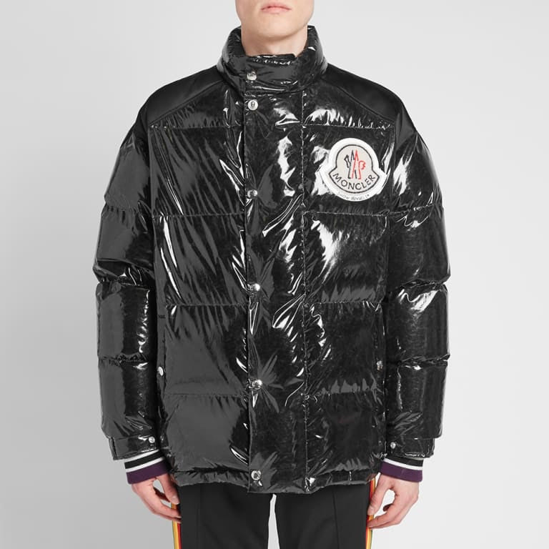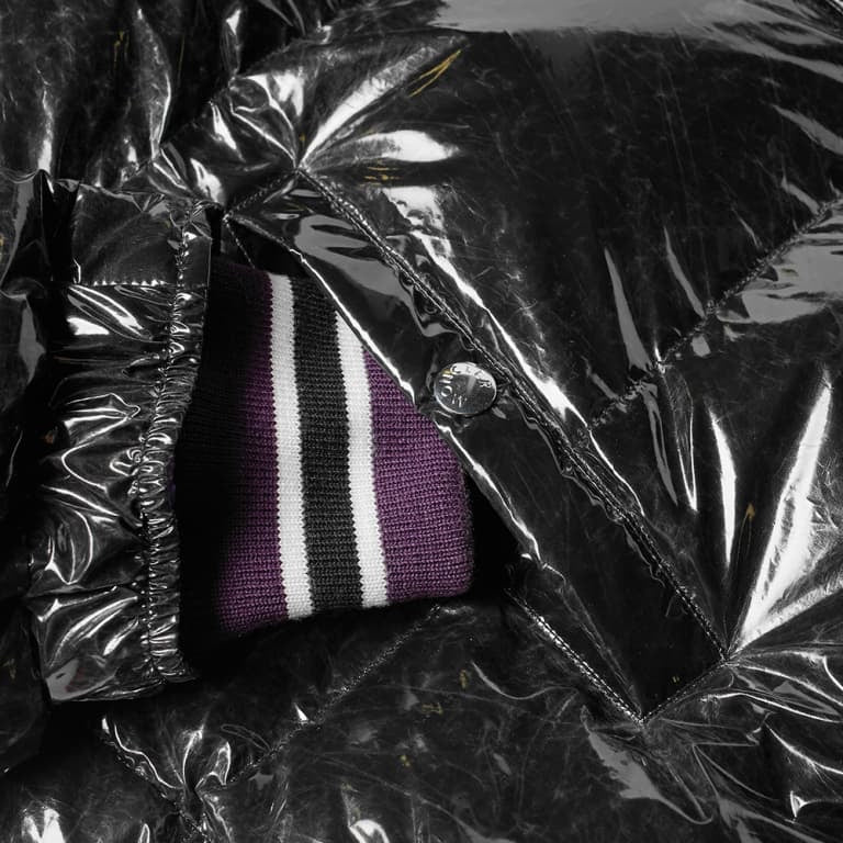 Collaborating with Moncler Genuis  sees Palm Angels director Francesco Ragazzi’s career come full circle – the designer started out at the luxury outerwear brand before going to set up his streetwear label. Here, he shows his reverence for Moncler’s illustrious heritage, taking what is arguably its most iconic output – the quilted down jacket – and giving it an injection of Palm Angels irreverence. With its black, wet-look shell and oh-so-slick pared-back styling, the storm-proof coat is a cut above in the style stakes, not to mention performance level. Lined with royal purple satin-weave nylon, it is marked at the back with a giant leather Moncler patch in contrasting white and displays Palm Angels’ subcultural sensibilities with a row of spiked studs, finishing the look off to punk rock perfection.